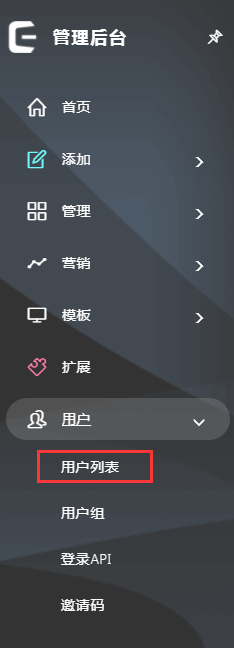 管理后臺(tái)-【用戶】-【用戶列表】,如圖:
