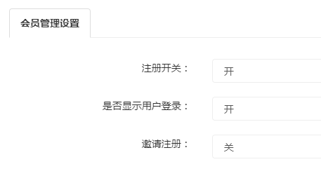 (1)注冊(cè)開(kāi)關(guān):設(shè)置網(wǎng)站是否啟用會(huì)員系統(tǒng)