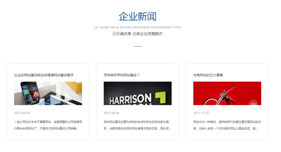 企業(yè)新聞顯示的是調(diào)用欄目下最新的三個(gè)內(nèi)容,且需勾選了推薦位和上傳了縮略圖圖片才能在首頁顯示;
