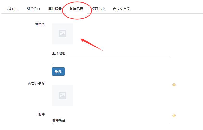 輸入內(nèi)容后,還要在 [ 擴(kuò)展信息 ] - [ 縮略圖 ] 上傳用于首頁顯示的圖片。