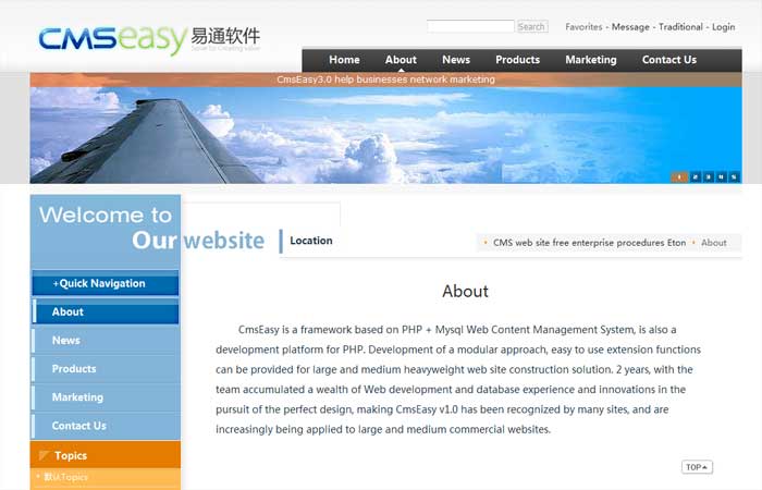 易通企業(yè)網(wǎng)站系統(tǒng)是九州易通科技開發(fā)的中國首套免費提供模板的營銷型企業(yè)網(wǎng)站管理系統(tǒng),系統(tǒng)前臺生成html、完全符合SEO、同時有在線客服、潛在客戶跟蹤、便捷的企業(yè)網(wǎng)站管理、搜索引擎推廣等功能。
