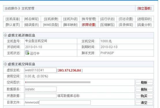 點(diǎn)擊“管理按鈕”進(jìn)入相應(yīng)的主機(jī)管理頁面