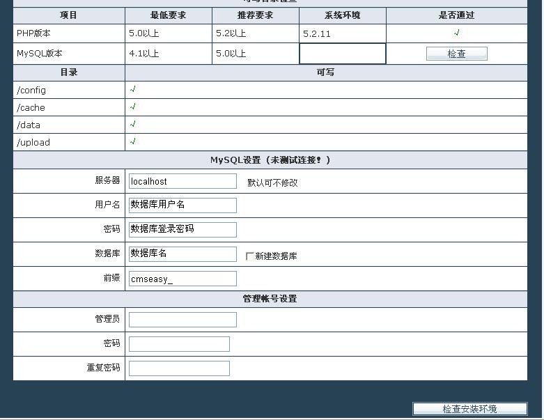 點(diǎn)擊“確定”,并新開IE窗口,在地址欄輸入易通網(wǎng)站提供的2級域名及install/,例如http://web0110341.w84.cmseasy.net/install/。