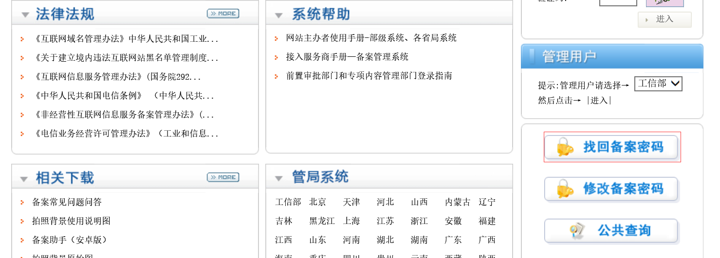 若忘記備案密碼,請(qǐng)點(diǎn)擊 找回工信部備案密碼http://www.beian.miit.gov.cn/state/outPortal/loginPortal.action 。步驟參考以下過(guò)程