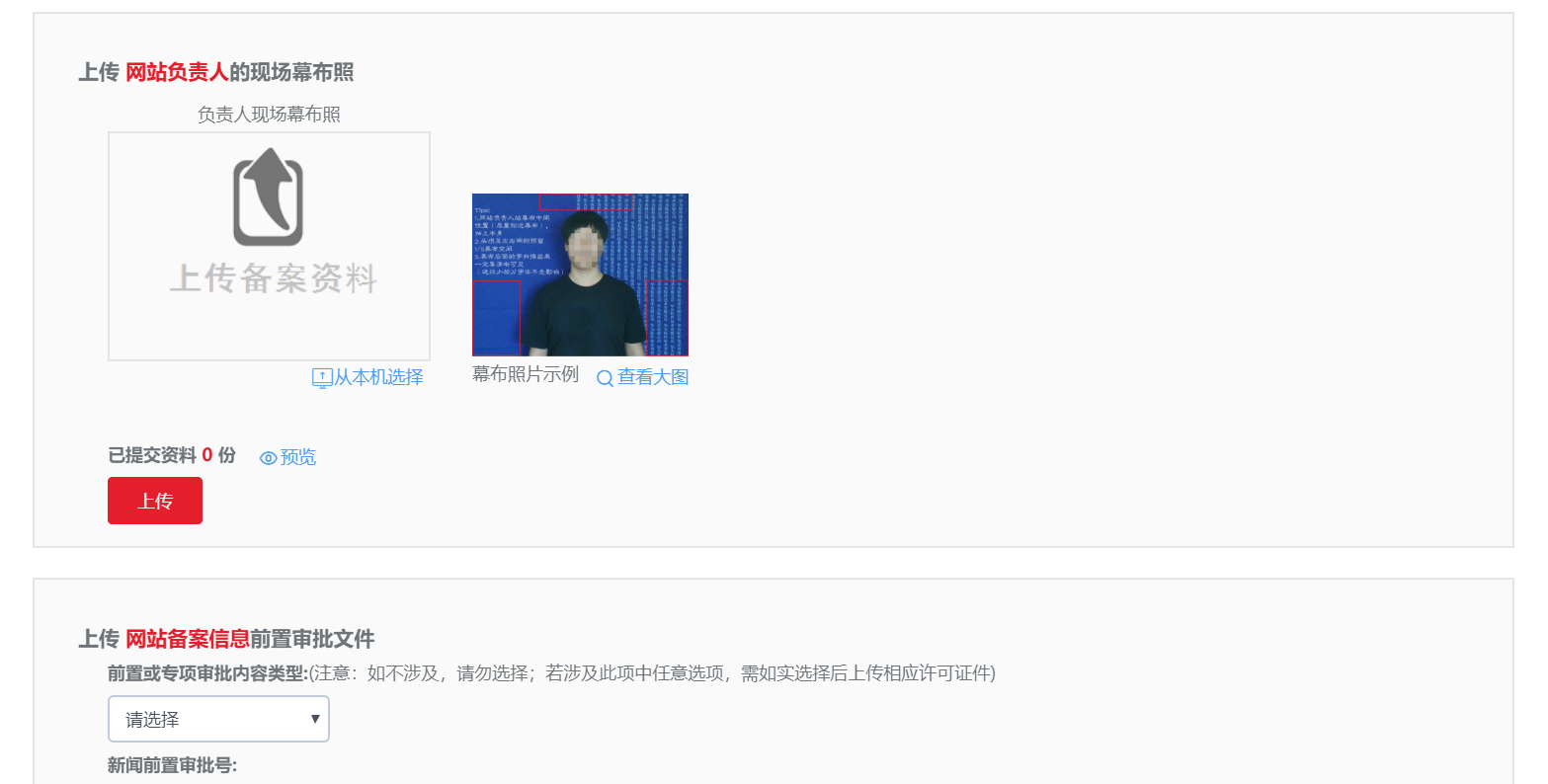 5、幕布照拍好后請(qǐng)進(jìn)入“查看備案信息”頁(yè)面,點(diǎn)擊“上傳網(wǎng)站證件”---上傳幕布照片