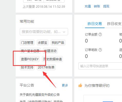 (4)MD5密鑰:登錄 https://b.alipay.com 后,左側(cè) [ 查看PID|KEY ]