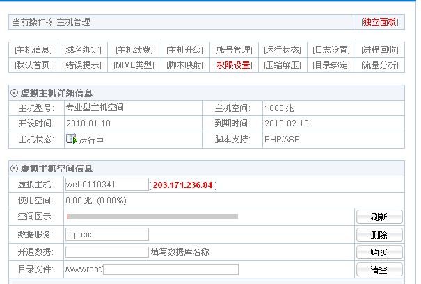 點(diǎn)擊“管理按鈕”進(jìn)入相應(yīng)的主機(jī)管理頁(yè)面