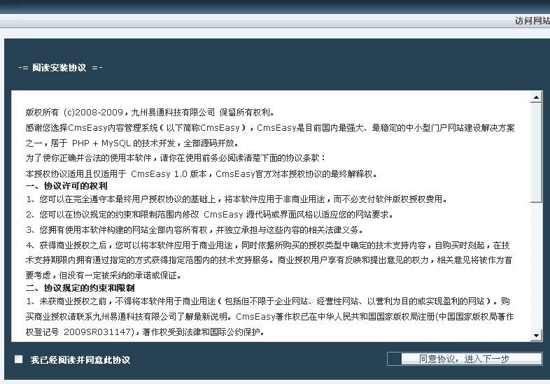 點(diǎn)擊“確定”,并新開(kāi)IE窗口,在地址欄輸入易通網(wǎng)站提供的2級(jí)域名及install/,例如http://web0110341.w84.cmseasy.net/install/。